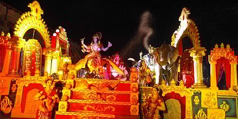 ಮಡಿಕೇರಿ ಹತ್ತು ದೇವಸ್ಥಾನಗಳಿಂದ ಹೊರಡುವ ಮೆರವಣಿಗೆಯೇ ಇಲ್ಲಿಯ ದಸರಾದ ಪ್ರಮುಖ ಆಕರ್ಷಣೆಯೆಂದರೆ ಅತಿಶಯವೇನಲ್ಲ. ವಿಜಯದಶಮಿಯ ರಾತ್ರಿ ಸುಮಾರು 9 ಗಂಟೆಗೆ ಆರಂಭವಾಗಿ ಮಾರನೇಯ ದಿನ ಬೆಳಿಗ್ಗೆ ಕೊನೆಗೊಳ್ಳುತ್ತದೆ. ಪ್ರತಿಯೊಂದು ಉತ್ಸವವೂ ಸುಮಾರು 2೦ 25 ಅಡಿಗಳಷ್ಟು ಎತ್ತರವಿದ್ದು ತರ ತರಹದ ಬಣ್ಣ ಬಣ್ಣದ ವಿವಿಧ್ಯಮಯ ವಿದ್ಯುತ್ ದೀಪಗಳಿಂದ ಅಲಂಕೃತವಾಗಿರುವುದನ್ನು ವರ್ಣಿಸುವುದಕ್ಕಿಂತಲೂ ನೋಡಿದರೇ ಬಲು ಆನಂದ ಎನಿಸುತ್ತದೆ. ಈ ಉತ್ಸವಗಳ ಮುಂದೆ ಬಾಜಾ ಭಜಂತ್ರಿಗಳು ಮತ್ತು ಇತ್ತೀಚಿನ ಡಿಜೆಯ ಮುಖಾಂತರ ಎದೆ ಝಲ್ ಎನಿಸುವಂತಹ ಹಾಡುಗಳಿಗೆ ಮನಸೋ ಇಚ್ಚೆ ಕುಣಿಯಲೆಂದೇ ಸಾವಿರಾರು ಯುವಕರು ಬರುತ್ತಾರೆ.