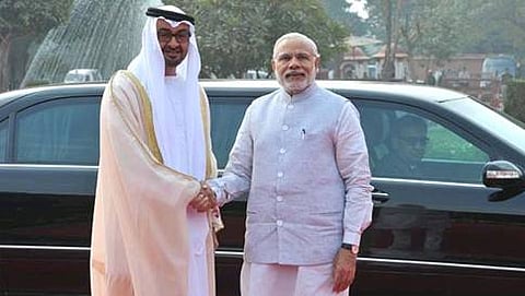 ನವದೆಹಲಿ: ಅಬುಧಾಬಿಯ ಯುವರಾಜ ಹಾಗೂ ಸಂಯುಕ್ತ ಅರಬ್ ಗಣರಾಜ್ಯದ ಸಶಸ್ತ್ರ ಪಡೆಗಳ ಉಪ ಸರ್ವೋಚ್ಛ ದಂಡನಾಯಕ ಜನರಲ್ ಶೇಖ್ ಮುಹಮ್ಮದ್ ಬಿನ್ ಝಾಯೆದ್ ಅಲ್ ನಹ್ಯಾನ್ ಅವರು ಭಾರತಕ್ಕೆ ಮೂರು ದಿನಗಳ ಭೇಟಿಗೆ ಆಗಮಿಸಿದ್ದು, ಪ್ರಧಾನಮಂತ್ರಿ ನರೇಂದ್ರ ಮೋದಿಯವರು ಅವರನ್ನು ಗುರುವಾರ ಸ್ವಾಗತಿಸಿದ್ದಾರೆ.