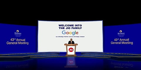 ಜಿಯೋ ಸಂಸ್ಥೆಯಲ್ಲಿ ಗೂಗಲ್ 33,000 ಕೋಟಿ ರೂಪಾಯಿ ಹೂಡಿಕೆ ಮಾಡಲಿದ್ದು ರಿಲಾಯನ್ಸ್ ಇಂಡಸ್ಟ್ರೀಸ್ ಟೆಕ್ನಾಲಜಿಯಲ್ಲಿ ಸಂಸ್ಥೆಯ ಶೇ.7.7 ರಷ್ಟು ಪಾಲುದಾರಿಕೆ ಪಡೆಯಲಿದೆ ಎಂದು ರಿಲಾಯನ್ಸ್ ಮುಖ್ಯಸ್ಥ ಮುಖೇಶ್ ಅಂಬಾನಿ ಘೋಷಿಸಿದ್ದಾರೆ.