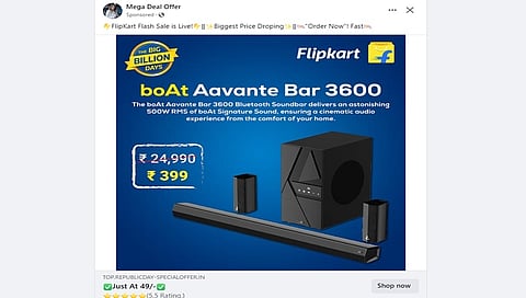 ಗ್ರಾಹಕರನ್ನು ಆಕರ್ಷಿಸಲು ಒಂದು ನಕಲಿ ಜಾಲತಾಣವು ಹೆಚ್ಚಿನ ರಿಯಾಯಿತಿಗಳನ್ನು ನೀಡುತ್ತದೆ. ಆ ಲಿಂಕ್ ಅನ್ನು ಕ್ಲಿಕ್ ಮಾಡಿರೆ ಅದು ಮುಂದಿನ ಆಯ್ಕೆಗಳನ್ನು ನೀಡುತ್ತಾ ಹೋಗುತ್ತದೆ. ಈ ಅಸಂಬದ್ಧ ಬೆಲೆಗಳು ಹಾಸ್ಯಾಸ್ಪದ ಮಾತ್ರವಲ್ಲ, ಅವು ಅನೈತಿಕ ಮತ್ತು ಕಾನೂನುಬಾಹಿರ ಕೂಡ. ಅಂತಹ ಕೊಡುಗೆಗಳಿಂದ ಮತ್ತು ಜಾಲತಾಣಗಳಿಂದ ದೂರವಿರಿ.