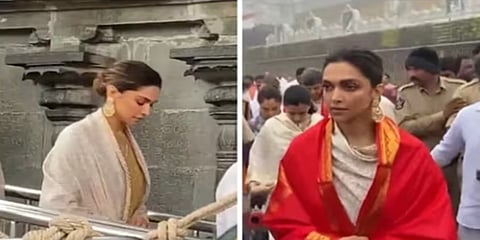 ತಿರುಪತಿ: ಚಿತ್ರ ಬಿಡುಗಡೆಗೆ ಮುನ್ನ ಬಾಲಿವುಡ್ ನಟರು ದೇವಸ್ಥಾನಗಳಿಗೆ ಭೇಟಿ ನೀಡಿ ಪ್ರಾರ್ಥನೆ ಸಲ್ಲಿಸುವುದು ಇತ್ತೀಚೆಗೆ ಜೋರಾಗಿದೆ. ಶಾರೂಕ್ ಖಾನ್ ಇತ್ತೀಚೆಗೆ ಜಮ್ಮುವಿನ ವೈಷ್ಣೋದೇವಿ ಮತ್ತು ಶಿರಡಿ ಸಾಯಿಬಾಬನ ದರ್ಶನ ಪಡೆದಿದ್ದರು. ಬಾಲಿವುಡ್ ಖ್ಯಾತ ನಟಿ ಬೆಂಗಳೂರು ಮೂಲದ ದೀಪಿಕಾ ಪಡುಕೋಣೆ ನಿನ್ನೆ ಶುಕ್ರವಾರ ಬೆಳಗ್ಗೆ ತಿರುಪತಿ ದೇವಸ್ಥಾನಕ್ಕೆ ತಮ್ಮ ತಂದೆ-ತಾಯಿ ಮತ್ತು ಸೋದರಿ ಜೊತೆ ಭೇಟಿ ನೀಡಿದ್ದರು.