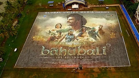 ಎಸ್ ಎಸ್ ರಾಜಮೌಳಿ ನಿರ್ದೇಶನದ ಬಾಹುಬಲಿ ಚಿತ್ರ ರಿಲೀಸ್ಗೆ ಮುನ್ನವೇ ಗಿನ್ನಿಸ್ ದಾಖಲೆಗೆ ಸೇರ್ಪಡೆ ಸೇರಿ ಸುದ್ದಿಯಾಗಿದೆ. ಅದು ಹೇಗೆ ಅಂತೀರಾ? ಸದ್ಯ, ಗಿನ್ನಿಸ್ ದಾಖಲೆಗೆ ಸೇರಿರುವುದು ಬಾಹುಬಲಿ ಸಿನಿಮಾ ಅಲ್ಲ ಬಾಹುಬಲಿ ಪೋಸ್ಟರ್ . ಕೇರಳದ ಕೊಚ್ಚಿಯಲ್ಲಿ ನಡೆದ ಬಾಹುಬಲಿ ಮಲಯಾಳಂ ಆವೃತ್ತಿಯ ಸಂಗೀತ ಬಿಡುಗಡೆಯ ಸಂದರ್ಭದಲ್ಲಿ ಬೃಹತ್ ಪೋಸ್ಟರ್ವೊಂದನ್ನು ನಿರ್ಮಿಸಲಾಗಿತ್ತು. ಈ ಬೃಹತ್ ಪೋಸ್ಟರ್ ಈಗ ಗಿನ್ನಿಸ್ ದಾಖಲೆಗೆ ಸೇರಿದೆ. 51, 961.32 ಚ.ಮೀ ದೊಡ್ಡಗಾಗಿರುವ ಪೋಸ್ಟರ್ ಆಗಿದೆ ಇದು.