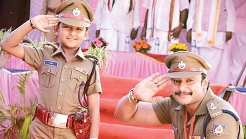 ಚ್ಯಾಲೆಂಜಿಂಗ್ ಸ್ಟಾರ್ ದರ್ಶನ್ ಅವರು ತಮ್ಮ ಏಳು ವರ್ಷದ ಮಗನಿಗೆ ಈಗಲೇ ಸಿನಿರಂಗ ಪ್ರವೇಶಕ್ಕೆ ವೇದಿಕೆ ಸಿದ್ಧಪಡಿಸುತ್ತಿದ್ದಾರೆ. ದರ್ಶನ್ ಪುತ್ರ ವಿನೀಶ್ 'ಐರಾವತ' ಚಿತ್ರಕ್ಕಾಗಿ ಬಣ್ಣ ಹಚ್ಚಿದ್ದು, ಅಪ್ಪ ಮತ್ತು ಮಗ ಪೊಲೀಸ್ ಅಧಿಕಾರಿಯ ಕಾಸ್ಟೂಮ್ ನಲ್ಲಿರುವ ಫೋಟೋವೊಂದು ಸಾಮಾಜಿಕ ಜಾಲ ತಾಣಗಳಲ್ಲಿ ಸಖತ್ ಸುದ್ದಿ ಮಾಡುತ್ತಿದೆ.