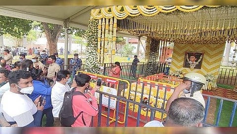 ಬೆಂಗಳೂರಿನ ಕಂಠೀರವ ಸ್ಟುಡಿಯೊದಲ್ಲಿರುವ ಅಪ್ಪು ಸಮಾಧಿಗೆ ಜನಸಾಗರ ಹರಿದು ಬರುತ್ತಲೇ ಇದೆ. ಧಾರಾಕಾರ ಮಳೆಯನ್ನು ಕೂಡ ಲೆಕ್ಕಿಸದೆ ಪುನೀತ್ ಸಮಾಧಿಗೆ ಪುಟ್ಟ ಮಕ್ಕಳಿಂದ ಹಿಡಿದು ಹಿರಿಯರವರೆಗೆ ಸಾಕಷ್ಟು ಸಂಖ್ಯೆಯಲ್ಲಿ ಅಭಿಮಾನಿಗಳು ಬರುತ್ತಲೇ ಇದ್ದಾರೆ. ರಾಜ್ಯದ ವಿವಿಧ ಭಾಗಗಳಿಂದ ಜನರು ಬಂದು ತಮ್ಮ ನೆಚ್ಚಿನ ನಟನ ಸಮಾಧಿಗೆ ನಮನ ಸಲ್ಲಿಸಿ ಹೋಗುತ್ತಿದ್ದಾರೆ. ಪೊಲೀಸರು ಸ್ಥಳದಲ್ಲಿ ನಿಯೋಜನೆಗೊಂಡು ಪರಿಸ್ಥಿತಿ ನಿಭಾಯಿಸುತ್ತಿದ್ದಾರೆ.
