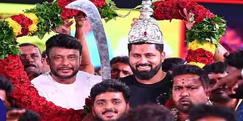 ಹೌದು. ರಾಜ್ಯೋತ್ಸವ ಕಾರ್ಯಕ್ರಮಕ್ಕೆ ತೆರಳಿದ್ದ ನಟ ದರ್ಶನ್ ಹಾಗೂ ಅಭಿಷೇಕ್ ಅಂಬರೀಶ್ ಅವರನ್ನು ಭರ್ಜರಿಯಾಗಿ ಸನ್ಮಾನಿಸಿದ್ದಾರೆ. ಈ ವೇಳೆ ದರ್ಶನ್ ಮತ್ತು ಅಭಿಗೆ ಬೆಳ್ಳಿ ಕಿರೀಟ, ಲಾಂಗ್ ಉಡುಗೊರೆ ನೀಡಿದ್ದಾರೆ. ದರ್ಶನ್ ಲಾಂಗ್ ಹಿಡಿದು ಪೋಸ್ ಕೊಟ್ಟಿರುವ ಫೋಟೋಗಳು ಸೋಶಿಯಲ್ ಮೀಡಿಯಾದಲ್ಲಿ ವೈರಲ್ ಆಗಿದೆ.