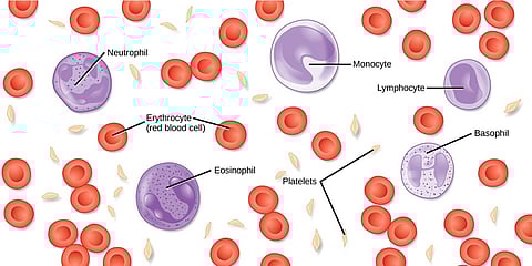 ರಕ್ತ-ನಮ್ಮ ದೇಹದಲ್ಲಿ ಸಂಚರಿಸುವ ಕೆಂಪು ಬಣ್ಣದ ದ್ರವವೇ ರಕ್ತ. ವಯಸ್ಕ ವ್ಯಕ್ತಿಯಲ್ಲಿ ಸುಮಾರು 4 ರಿಂದ 5 ಲೀಟರ್ ರಕ್ತ ಸದಾ ಪರಿಭ್ರಮಿಸುತ್ತಿರುತ್ತದೆ. ಹೊಸ ರಕ್ತದ ಉತ್ಪಾದನೆ ಮತ್ತು ಹಳೆಯ ರಕ್ತದ ವಿಸರ್ಜನೆ ಇವುಗಳಿಂದ ರಕ್ತದ ಸಮಗ್ರ ಪ್ರಮಾಣ ಸಂರಕ್ಷಿತವಾಗುತ್ತದೆ. ರಕ್ತದಲ್ಲಿ ಪ್ಲಾಸ್ಮಾ ಎಂಬ ಹಳದಿ ದ್ರವದಲ್ಲಿ ಮೂರು ವಿಧದ ಕಣಗಳು ತೇಲುತ್ತಿರುತ್ತವೆ. 1. ಕೆಂಪು ರಕ್ತ ಕಣಗಳು 2. ಬಿಳಿಯ ರಕ್ತ ಕಣಗಳು 3. ಪ್ಲೇಟ್ಲೆಟ್ಗಳು, ಇವುಗಳನ್ನು ಸೂಕ್ಷ್ಮದರ್ಶಕದ ಮೂಲಕ ಮಾತ್ರ ನೋಡಬಹುದು.