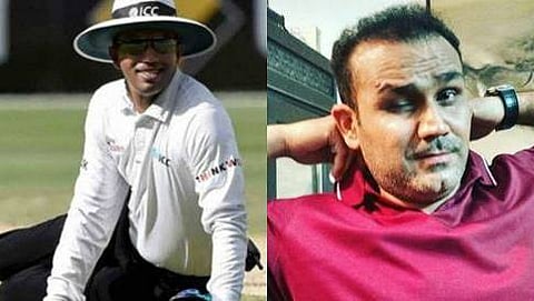 ನವದೆಹಲಿ: ಟೀಂ ಇಂಡಿಯಾ ಮಾಜಿ ಆಟಗಾರ ವೀರೇಂದ್ರ ಸೆಹ್ವಾಗ್ ಸಾಮಾಜಿಕ ಜಾಲತಾಣದಲ್ಲಿ ತಮ್ಮ ವಿಶೇಷ ಟ್ವೀಟ್ ಗಳ ಮೂಲಕ ಜನಪ್ರಿಯರಾಗಿದ್ದು ಇದೀಗ ಅವರು ಶ್ರೀಲಂಕಾದ ಅಂಪೈರ್ ಕುಮಾರ ಧರ್ಮಸೇನ ಅವರ ಕಾಲೆಳೆದಿದ್ದಾರೆ.