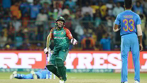ಬೆಂಗಳೂರು: ಎಂ ಚಿನ್ನಸ್ವಾಮಿ ಕ್ರೀಡಾಂಗಣದಲ್ಲಿ ಬುಧವಾರ ಭಾರತದ ವಿರುದ್ಧ ನಡೆದ ಪಂದ್ಯದಲ್ಲಿ ಗೆಲುವಿಗೂ ಮುನ್ನವೇ ಸಂಭ್ರಮಾಚರಣೆಯಲ್ಲಿ ಸೋಲಿನ ಬಳಿಕ ಮುಜಗರಕ್ಕೊಳಗಾಗಿದ್ದ ಬಾಂಗ್ಲಾದೇಶ ಕ್ರಿಕೆಟಿಗ ಮುಶ್ಫಿಕರ್ ರಹೀಮ್ ಬಾಂಗ್ಲಾ ಅಭಿಮಾನಿಗಳ ಕ್ಷಮೆ ಕೋರಿದ್ದಾರೆ.