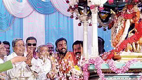 ಹೆಸರಾಂತ ಕವಿ ಚನ್ನವೀರ ಕಣವಿ ಚಾಮುಂಡಿ ಬೆಟ್ಟದಲ್ಲಿ ದಸರಾಗೆ ಚಾಲನೆ ನೀಡಿದರು. ಈ ವೇಳೆ ಮುಖ್ಯಮಂತ್ರಿ ಸಿದ್ದರಾಮಯ್ಯ ಹಾಗೂ ಕಣವಿ ತಮ್ಮ ಉದ್ಘಾಟನಾ ಭಾಷಣದಲ್ಲಿ ರಾಜ್ಯಕ್ಕಾಗುತ್ತಿರುವ ಅನ್ಯಾಯದ ಬಗ್ಗೆ ಮಾತನಾಡಿದರು.