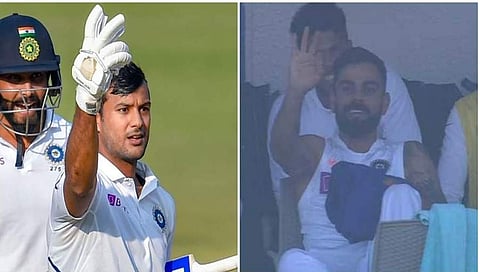 ಮಾಯಾಂಕ್ ಅಗರ್ ವಾಲ್ 150 ರನ್ ಗಳನ್ನು ಪೂರೈಸಿದಾಗ ಡ್ರೆಸ್ಸಿಂಗ್ ರೂಮ್ ನಲ್ಲಿ ಖುಷಿಯ ಅಲೆಯಲ್ಲಿ ತೇಲುತ್ತಿದ್ದ ಟೀಂ ಇಂಡಿಯಾ ಆಟಗಾರರತ್ತ ಬ್ಯಾಟ್ ಎತ್ತಿ ಸಂತೋಷ ವ್ಯಕ್ತಪಡಿಸಿದ್ದಾರೆ. ಆ ಸಂದರ್ಭದಲ್ಲಿ ನಾಯಕ ವಿರಾಟ್ ಕೊಹ್ಲಿ ದ್ವಿಶತಕ ಮಾಡುವಂತೆ ಕೈಯಲ್ಲಿಯೇ ಸೂಚನೆ ನೀಡಿದ್ದಾರೆ.ಮಾಯಾಂಕ್ ಅಗರ್ ವಾಲ್ ಕೂಡಾ ಹೆಬ್ಬೆರಳು ಎತ್ತಿ ಓಕೆ ಎಂದಿದ್ದಾರೆ. ಅದೇ ರೀತಿಯಲ್ಲಿ ದ್ವಿಶತಕವನ್ನು ಭಾರಿಸುವಲ್ಲಿ ಯಶಸ್ವಿಯೂ ಆಗಿದ್ದಾರೆ.