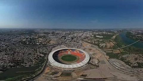 ಫೆಬ್ರವರಿ 24ರಂದು ಡೊನಾಲ್ಡ್ ಟ್ರಂಪ್ ಭಾರತಕ್ಕೆ ಬರುತ್ತಿದ್ದು ವಿಶ್ವದ ಬೃಹತ್ ಕ್ರೀಡಾಂಗಣವನ್ನು ಲೋಕಾರ್ಪಣೆ ಮಾಡಲಿದ್ದಾರೆ. ಹೌಡಿ ಮೋದಿಗೆ ಸಮಾನವಾಗಿ ಮೊಟೆರಾ ಸ್ಟೇಡಿಯಂನಲ್ಲಿ ಕೆಮ್ ಚೊ ಟ್ರಂಪ್ ಕಾರ್ಯಕ್ರಮ ಆಯೋಜನೆಯಾಗಲಿದೆ. ಇನ್ನು ಕ್ರೀಡಾಂಗಣದ ಆಗಸದಿಂದ ಹಿಡಿದಿದ್ದ ಚಿತ್ರವೊಂದನ್ನು ಬಿಸಿಸಿಐ ಟ್ವೀಟ್ ಮಾಡಿತ್ತು.