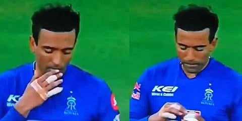 ಬುಧವಾರದ ಪಂದ್ಯದಲ್ಲಿ ಟಾಸ್ ಸೋತಿದ್ದ ಕೋಲ್ತತ್ತಾ ಮೊದಲು ಬ್ಯಾಟಿಂಗ್'ಗೆ ಬಂದಿತ್ತು. ಈ ವೇಳೆ ರಾಜಸ್ಥಾನ್ ರಾಯಲ್ಸ್ ತಂಡದ ಬೌಲರ್ ಜಯದೇವ್ ಉನಾದ್ಕಟ್ ಅವರು ಇನ್ನಿಂಗ್'ನ ಮೂರನೇ ಓವರ್ ಬೌಲ್ ಮಾಡುತ್ತಿದ್ದರು. ಆಗ ನೈಟ್ ರೈಡರ್ಸ್ ತಂಡ ಬ್ಯಾಟ್ಸ್'ಮ್ಯಾನ್ ಸುಲಿನ್ ನರೈನ್ ಅವರು ದೊಡ್ಡ ಹೊಡೆತಕ್ಕೆ ಕೈಹಾಕಿ ಉತ್ತಪ್ಪ ಅವರಿಗೆ ಕ್ಯಾಚ್ ನೀಡಿದ್ದರು. ಆದರೆ, ಸುಲಭ ಕ್ಯಾಚನ್ನು ಕೈಚೆಲ್ಲಿದ ಉತ್ತಪ್ಪ ಅವರು, ನಂತರ ಬಾಲಿಗೆ ಎಂಜಲು ಹಚ್ಚಿ ಕೊರೋನಾ ನಿಯಮ ಉಲ್ಲಂಘನೆ ಮಾಡಿದ್ದಾರೆ.