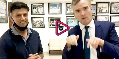 ನವದೆಹಲಿ: ಟೀಮ್ ಇಂಡಿಯಾದ ಕೋಚ್, ಮಾಜಿ ಕ್ರಿಕೆಟಿಗ ರಾಹುಲ್ ದ್ರಾವಿಡ್ ಅವರು ಭಾರತ-ಇಂಗ್ಲೆಂಡ್ ಟೆಸ್ಟ್ ಸರಣಿಯ ವೇಳೆ ಭಾರತದಲ್ಲಿನ ಬ್ರಿಟಿಷ್ ಹೈಕಮಿಷನರ್ ಅಲೆಕ್ಸ್ ಎಲ್ಲಿಸ್ ಅವರಿಗೆ ಕನ್ನಡ ಕಲಿಸಿದ್ದಾರೆ.