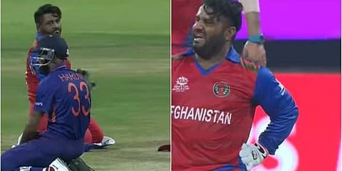 ನಿನ್ನೆಯ ಪಂದ್ಯದ ವೇಳೆ, ನವೀನ್ ಉಲ್ ಹಕ್ ಬೌಲಿಂಗ್ ನಲ್ಲಿ ಹಾರ್ದಿಕ್ ಪಾಂಡ್ ದೊಡ್ಡ ಹೊಡೆತಕ್ಕೆ ಕೈ ಹಾಕಿದ್ದರು. ಈ ವೇಳೆ ಫೀಲ್ಡಿಂಗ್ ನಲ್ಲಿದ್ದ ಅಫ್ಘಾನಿಸ್ತಾನದ ಆಟಗಾರ ನಜೀಬುಲ್ಲಾ, ಚೆಂಡನ್ನು ಕೈಚೆಲ್ಲಿದ್ರು. ಈ ವೇಳೆ ರನ್ ಗಳಿಸುವ ಭರದಲ್ಲಿದ್ದ ಪಾಂಡ್ಯ ವೇಗವಾಗಿ ಓಡಿ ಬಂದು 90 ಕೆಜಿ ತೂಕದ ವ್ಯಕ್ತಿ ಮೊಹಮ್ಮದ್ ಶಹಜಾಜ್ ಗೆ ಡಿಕ್ಕಿ ಹೊಡೆದು ನೆಲಕ್ಕೆ ಬಿದ್ದಿದ್ದಾರೆ.