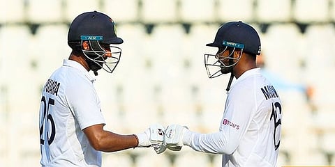 ಮುಂಬೈ: ವಾಂಖೆಡೆ ಕ್ರೀಡಾಂಗಣದಲ್ಲಿ ನ್ಯೂಜಿಲೆಂಡ್ ವಿರುದ್ಧ ನಡೆಯುತ್ತಿರುವ 2ನೇ ಟೆಸ್ಟ್ ಪಂದ್ಯದ 2ನೇ ದಿನದಾಟ ಅಂತ್ಯವಾಗಿದ್ದು, 2ನೇ ಇನ್ನಿಂಗ್ಸ್ ನಲ್ಲಿ ಭಾರತ ವಿಕೆಟ್ ನಷ್ಟವಿಲ್ಲದೇ 69ರನ್ ಗಳಿಸಿದೆ. ಅಂತೆಯೇ ನ್ಯೂಜಿಲೆಂಡ್ ವಿರುದ್ಧ 332 ರನ್ ಗಳ ಮುನ್ನಡೆ ಕಾಯ್ದುಕೊಂಡಿದೆ.