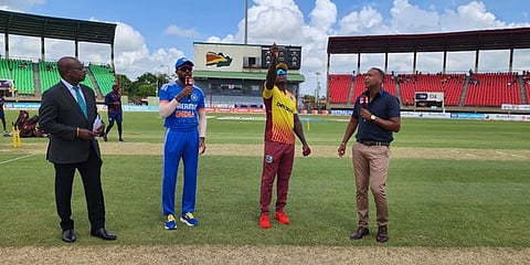 ಭಾರತ ವಿರುದ್ಧ ಇಲ್ಲಿನ ಪ್ರಾವಿಡೆನ್ಸ್ ಮೈದಾನದಲ್ಲಿ ನಡೆಯುತ್ತಿರುವ ಮೂರನೇ ಟ್ವೆಂಟಿ-20 ಪಂದ್ಯದಲ್ಲಿ ಟಾಸ್ ಗೆದ್ದಿರುವ ಅತಿಥೇಯ ವೆಸ್ಟ್ ಇಂಡೀಸ್ ತಂಡದ ನಾಯಕ ರೋವ್ಮನ್ ಪೊವೆಲ್ ಮೊದಲು ಬ್ಯಾಟಿಂಗ್ ಆಯ್ದುಕೊಂಡಿದ್ದಾರೆ.