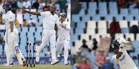 ಆಫ್ರಿಕಾದ ಮಾರಕ ಬೌಲಿಂಗ್ ತತ್ತರಿಸಿದ ಭಾರತ ತಂಡ ಕೇವಲ 107 ರನ್ ಗಳಿಗೆ ಪ್ರಮುಖ 5 ವಿಕೆಟ್ ಕಳೆದುಕೊಂಡಿತ್ತು. ಆರಂಭಿಕ ಆಟಗಾರ ಯಶಸ್ವಿ ಜೈಸ್ವಾಲ್ 17 ರನ್ ಗಳಿಸಿದರೆ ನಾಯಕ ರೋಹಿತ್ ಶರ್ಮಾ 5 ರನ್ ಔಟಾದರು. ಬಳಿಕ ಬಂದ ಶುಭ್ ಮನ್ ಗಿಲ್ ಕೂಡ ಕೇವಲ 2 ರನ್ ಗೆ ವಿಕೆಟ್ ಒಪ್ಪಿಸಿದರು. ಈ ವೇಳೆ ಭಾರತ ತೀವ್ರ ಆಘಾತ ಎದುರಿಸಿತು. ಈ ಹಂತದಲ್ಲಿ ಜೊತೆಗೂಡಿದ ವಿರಾಟ್ ಕೊಹ್ಲಿ (38 ರನ್) ಮತ್ತು ಶ್ರೇಯಸ್ ಅಯ್ಯರ್ (31 ರನ್) ಆರಂಭಿಕ ಆಘಾತದಿಂದ ಮೇಲೆತ್ತುವ ಪ್ರಯತ್ನ ಪಟ್ಟರು. ಆದರೆ ರಬಾಡ ಮತ್ತೆ ಭಾರತ ತಂಡಕ್ಕೆ ಆಘಾತ ನೀಡಿದರು. ಕೊಹ್ಲಿ ಮತ್ತು ಅಯ್ಯರ್ ಇಬ್ಬರ ವಿಕೆಟ್ ಪಡೆದರು.