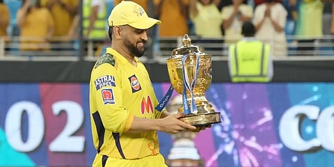 ಐಪಿಎಲ್ ಟ್ರೋಫಿಯೊಂದಿಗೆ ಎಂಎಸ್ ಧೋನಿ