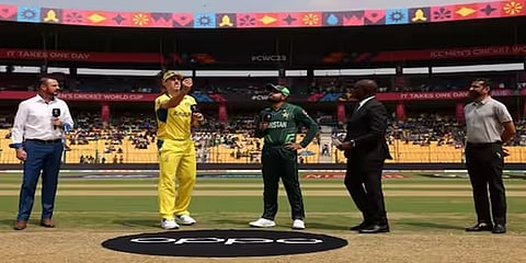 ಬೆಂಗಳೂರು: ಸಿಲಿಕಾನ್ ಸಿಟಿ ಬೆಂಗಳೂರಿನ ಚಿನ್ನಸ್ವಾಮಿ ಕ್ರೀಡಾಂಗಣದಲ್ಲಿ ಇಂದು ನಡೆಯುತ್ತಿರುವ ಐಸಿಸಿ ವಿಶ್ವಕಪ್ ಕ್ರಿಕೆಟ್ ಟೂರ್ನಿಯ ಪಂದ್ಯದಲ್ಲಿ ಆಸ್ಟ್ರೇಲಿಯಾ ವಿರುದ್ಧ ಟಾಸ್ ಗೆದ್ದ ಪಾಕಿಸ್ತಾನ ಮೊದಲಿಗೆ ಬೌಲಿಂಗ್ ಆಯ್ದುಕೊಂಡಿದೆ.