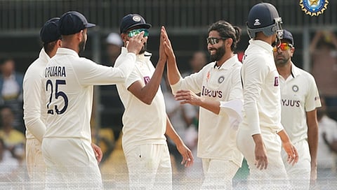 ಭಾರತ ಪರ ಬೌಲಿಂಗ್ ನಲ್ಲಿ ಅದ್ಭುತ ಪ್ರದರ್ಶನ ನೀಡಿರುವ ರವೀಂದ್ರ ಜಡೇಜಾ 4 ವಿಕೆಟ್ ಪಡೆದಿದ್ದಾರೆ.