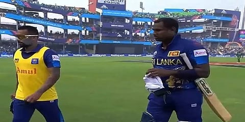 ಮ್ಯಾಥ್ಯೂಸ್ ಬದಲಿಗೆ ಮತ್ತೊಬ್ಬ ಆಟಗಾರನ್ನು ಕರೆದು ಆಡಿಸಬಹುದಾಗಿತ್ತು. ಆದರೆ, ಅದನ್ನು ಮಾಡದೆ ಸಮಯ ತೆಗೆದುಕೊಂಡಿದ್ದರಿಂದ ಬಾಂಗ್ಲಾದೇಶದ ನಾಯಕ ಶಕೀಬ್ ಅಲ್ ಹಸ್ ಮೇಲ್ಮನವಿ ಸಲ್ಲಿಸಿದ್ದಾರೆ. ಆಗ ನಿಯಮಗಳ ಪ್ರಕಾರ, ಮ್ಯಾಥ್ಯೂಸ್ ಔಟ್ ಎಂದು ತೀರ್ಪು ನೀಡಿದ್ದಾರೆ. ಇದರಿಂದಾಗಿ ಮ್ಯಾಥ್ಯೂಸ್ ಒಂದೇ ಒಂದು ಎಸೆತವನ್ನು ಎದುರಿಸದೆ ಫೆವಿಲಿಯನ್ ಗೆ ನಿರ್ಗಮಿಸಬೇಕಾಯಿತು.