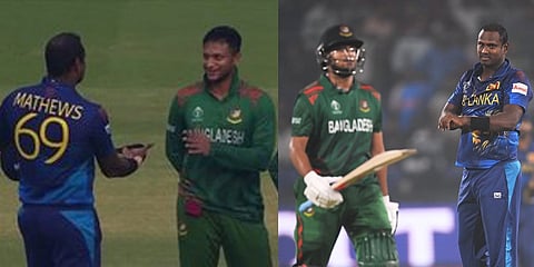 ನಿಯಮಗಳ ಪ್ರಕಾರ, ಒಬ್ಬ ಬ್ಯಾಟರ್ ಔಟಾದ ಬಳಿಕ ಹೊಸ ಬ್ಯಾಟ್ಸ್ಮನ್ ಎರಡು ನಿಮಿಷಗಳಲ್ಲಿ ಚೆಂಡನ್ನು ಎದುರಿಸಲು ಸಿದ್ಧರಾಗಿರಬೇಕು. ಆದರೆ ಮ್ಯಾಥ್ಯೂಸ್ಗೆ ಹಾಗೆ ಮಾಡಲು ಸಾಧ್ಯವಾಗಲಿಲ್ಲ. ಹೀಗಾಗಿ ಅಂಪೈರ್ ಔಟ್ ನೀಡಬೇಕಾಯಿತು. ಒಂದು ವೇಳೆ ಬಾಂಗ್ಲಾದೇಶದ ನಾಯಕ ಹಸನ್, ಇಲ್ಲಿ ಮ್ಯಾಥ್ಯೂಸ್ ಔಟ್ಗೆ ಮನವಿ ಮಾಡದಿದ್ದರೆ ಮ್ಯಾಥ್ಯೂಸ್ ಔಟಾಗುತ್ತಿರಲಿಲ್ಲ. ಇದಾದ ಬಳಿಕ ಬಾಂಗ್ಲಾ-ಲಂಕಾ ನಡುವಣ ಪಂದ್ಯ ಮತ್ತಷ್ಟು ಕಾವೇರಿತು. ಬಾಂಗ್ಲಾ ಬ್ಯಾಟಿಂಗ್ ಮಾಡುವ ವೇಳೆ ಶಕಿಬ್ ಅವರು ಮ್ಯಾಥ್ಯೂಸ್ ಬೌಲಿಂಗ್ನಲ್ಲೇ ಔಟ್ ಆದರು. ಈ ಸಂದರ್ಭ ಮ್ಯಾಥ್ಯೂಸ್ ‘ನಿನ್ ಟೈಮ್ ಆಯ್ತು’ ಎಂಬಂತೆ ಸನ್ನೆ ಮಾಡಿ ಪೆವಿಲಿಯನ್ಗೆ ಹೋಗು ಎಂದರು. ಪಂದ್ಯ ಮುಗಿದ ಬಳಿಕ ಲಂಕಾ ಆಟಗಾರರು ಬಾಂಗ್ಲಾ ಆಟಗಾರರ ಜೊತೆ ಹಸ್ತಲಾಘವ ಕೂಡ ಮಾಡಲಿಲ್ಲ.