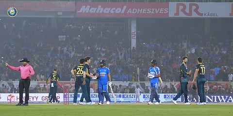 ಈ ವೇಳೆ ನಾಟಕೀಯ ಕುಸಿತ ಕಂಡ ಭಾರತ ಸತತವಾಗಿ ಮೂರು ವಿಕಟ್ ಕಳೆದುಕೊಂಡು ಸೋಲಿನತ್ತ ಮುಖ ಮಾಡಿತು. ಕೊನೆಯ ಎಸೆತದಲ್ಲಿ ಗೆಲುವಿಗೆ ಒಂದು ರನ್ ಬೇಕಿದ್ದಾಗ ಆತ್ಮವಿಶ್ವಾಸ ಕಳೆದುಕೊಳ್ಳದ ರಿಂಕು ಸಿಂಗ್ ಸಿಕ್ಸರ್ ಬಾರಿಸಿ ವಿಜಯ ಪತಾಕೆ ಹಾರಿಸಿದರು. ಅಚ್ಚರಿ ಎಂದರೆ ಇದು ನೋಬಾಲ್ ಕೂಡ ಆಗಿತ್ತು. ವಿಕೆಟ್ ಪತನಗೊಂಡರೂ ಭಾರತ ಗೆಲುವು ಸಾಧಿಸುತ್ತಿತ್ತು.