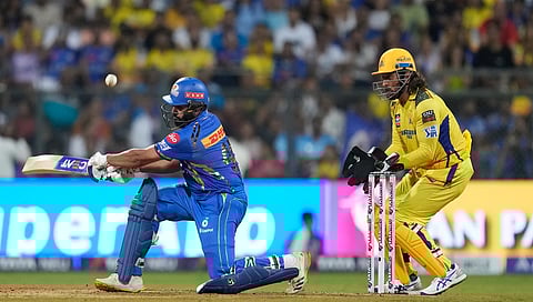 ಸಿಎಸ್ ಕೆ ನೀಡಿದ 207 ರನ್ ಗಳ ಗೆಲುವಿನ ಗುರಿ ಬೆನ್ನಟ್ಟಿದ್ದ ಮುಂಬೈ ಇಂಡಿಯನ್ಸ್ ಪರ ಆರಂಭಿಕ ಆಟಗಾರ ರೋಹಿತ್ ಶರ್ಮಾ 5 ಸಿಕ್ಸರ್, 11 ಬೌಂಡರಿಗಳೊಂದಿಗೆ ಅಜೇಯ 105 ರನ್ ಗಳಿಸಿದರು. ಆದರೆ ಉಳಿದ ಯಾವುದೇ ಆಟಗಾರರು ಕ್ರೀಸ್ ನಲ್ಲಿ ಹೆಚ್ಚು ಹೊತ್ತು ನಿಲ್ಲಲಿಲ್ಲ. ಇಶಾನ್ ಕಿಶಾನ್ 23, ಸೂರ್ಯ ಕುಮಾರ್ ಯಾದವ್ ಶೂನ್ಯಕ್ಕೆ ಔಟಾದರು.