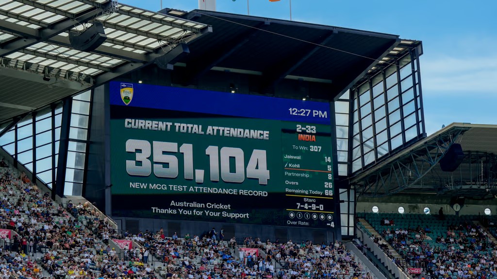 ಸೋಮವಾರ ಮೆಲ್ಬೋರ್ನ್ ಕ್ರಿಕೆಟ್ ಮೈದಾನದಲ್ಲಿ ನಡೆದ ನಾಲ್ಕನೇ ಟೆಸ್ಟ್ ಪಂದ್ಯದ ಒಟ್ಟು ಹಾಜರಾತಿ ಅಭೂತಪೂರ್ವ 350,700 ತಲುಪಿದ್ದು, ಇದು ಈವರೆಗಿನ ಗರಿಷ್ಠ ಹಾಜರಾತಿ ದಾಖಲೆಯಾಗಿದೆ. ಅಂತೆಯೇ 87 ವರ್ಷಗಳ ದಾಖಲೆಯನ್ನು ಮುರಿದಿದೆ.