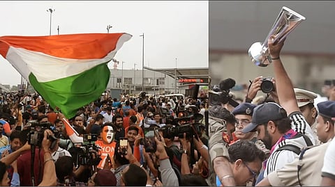 ಇಂದು ದೆಹಲಿ ಇಂದಿರಾ ಗಾಂಧಿ ಅಂತಾರಾಷ್ಟ್ರೀಯ ವಿಮಾನ ನಿಲ್ದಾಣದಲ್ಲಿ ನೂರಾರು ಅಭಿಮಾನಿಗಳು, ತಮ್ಮ ನೆಚ್ಚಿನ ಆಟಗಾರರನ್ನು ಅಭಿನಂದಿಸುವ ಫಲಕಗಳನ್ನು ಹಿಡಿದು ರಾಷ್ಟ್ರಧ್ವಜವನ್ನು ಬೀಸುತ್ತಾ, ಜಯಶಾಲಿ ಆಟಗಾರರನ್ನು ಸ್ವಾಗತಿಸಲು ಕಾದು ನಿಂತಿದ್ದರು. ವಿಮಾನ ನಿಲ್ದಾಣದ ಹೊರಗೆ ಸರತಿ ಸಾಲಿನಲ್ಲಿ ನಿಲ್ಲಲು ಮಳೆ ಅಡ್ಡಿಪಡಿಸಿತು.