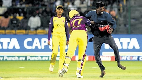 ಬೆಂಗಳೂರು: ಮಹಿಳಾ ಪ್ರೀಮಿಯರ್ ಲೀಗ್ (WPL) ಪಂದ್ಯದ ಸಂದರ್ಭದಲ್ಲಿ ಭದ್ರತಾ ನಿಯಮಗಳನ್ನು ಉಲ್ಲಂಘಿಸಿ ಮೈದಾನಕ್ಕೆ ನುಗ್ಗಿದ ವ್ಯಕ್ತಿಯೊಬ್ಬನನ್ನು ಕಬ್ಬನ್ ಪಾರ್ಕ್ ಪೊಲೀಸರು ಬಂಧನಕ್ಕೊಳಪಡಿಸಿದ್ದಾರೆ.