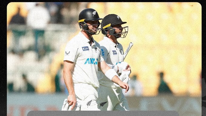 ಬಳಿಕ ಜೊತೆಗೂಡಿದ ರಚಿನ್ ರವೀಂದ್ರ (22 ರನ್) ಮತ್ತು ಡರಿಲ್ ಮಿಚೆಲ್ (14 ರನ್) 3ನೇ ದಿನಕ್ಕೆ ಕ್ರೀಸ್ ಕಾಯ್ದುಕೊಂಡಿದ್ದಾರೆ. ಭಾರತದ ಪರ ಕುಲದೀಪ್ ಯಾದವ್, ಆರ್ ಅಶ್ವಿನ್ ಮತ್ತು ರವೀಂದ್ರ ಜಡೇಜಾ ತಲಾ ಒಂದೊಂದು ವಿಕೆಟ್ ಪಡೆದರು. ಬ್ಯಾಟಿಂಗ್ ಮತ್ತು ಬೌಲಿಂಗ್ ಎರಡೂ ವಿಭಾಗದಲ್ಲಿ ಮೇಲುಗೈ ಸಾಧಿಸಿದ ಕಿವೀಸ್ ಪಡೆಗೆ ದಿನದ ಗೌರವ ಸಂದಿದೆ.