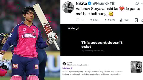 ಇನ್ನು ಈ ಪೋಸ್ಟ್ ವ್ಯಾಪಕ ವೈರಲ್ ಆಗಿ ಆಕ್ರೋಶ ವ್ಯಕ್ತವಾಗುತ್ತಲೇ ನಿಕಿತಾ ವಿವಾದಿತ ಪೋಸ್ಟ್ ಅನ್ನು ಡಿಲೀಟ್ ಮಾಡಿದ್ದು ಅಲ್ಲದೇ ಎಕ್ಸ್ ಖಾತೆಯನ್ನೇ ಡಿಆ್ಯಕ್ಟಿವೇಟ್ ಮಾಡಿದ್ದಾರೆ. ಇದಕ್ಕೂ ಮೊದಲು ನಿಕಿತಾ ತನ್ನ ಕೃತ್ಯಕ್ಕೆ ಕ್ಷಮೆ ಯಾಚಿಸಿದ್ದು, 'ನಿನ್ನೆ ರಾತ್ರಿ ವೈಭವ್ ಸೂರ್ಯವಂಶಿ ಅದ್ಭುತ ಬ್ಯಾಟಿಂಗ್ ನೋಡಿ Excitement ನಲ್ಲಿ ಅಶ್ಲೀಲ ಪೋಸ್ಟ್ ಮಾಡಿದೆ. ಬಳಿಕ ಅದು ತಪ್ಪು.. ನನ್ನ ಕೃತ್ಯದಿಂದ ತುಂಬಾ ನಾಚಿಕೆಯಾಗಿದೆ.. ಕ್ಷಮೆಯಾಚಿಸುತ್ತಿದ್ದೇನೆ ಎಂದು ಎಕ್ಸ್ ನಲ್ಲಿ ಬರೆದುಕೊಂಡಿದ್ದಾರೆ.