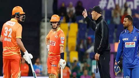 ಇಂಟರ್ನ್ಯಾಷನಲ್ ಲೀಗ್ ಟಿ20 (ILT20) ನಲ್ಲಿ ಎಂಐ ಎಮಿರೇಟ್ಸ್ ಮತ್ತು ಗಲ್ಫ್ ಜೈಂಟ್ಸ್ ನಡುವಿನ ಪಂದ್ಯದಲ್ಲಿ ಒಂದು ವಿಚಿತ್ರ ಘಟನೆ ನಡೆದಿದೆ. ಈ ಪಂದ್ಯದ ಎರಡನೇ ಇನ್ನಿಂಗ್ಸ್ನ 18 ನೇ ಓವರ್ನ ಕೊನೆಯ ಎಸೆತದಲ್ಲಿ ಈ ಘಟನೆ ನಡೆದಿದ್ದು ಇದು ಸಾಮಾಜಿಕ ಮಾಧ್ಯಮದಲ್ಲಿ ಚರ್ಚೆಯ ವಿಷಯವಾಯಿತು.