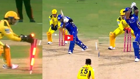 ಎಂಎಸ್ ಧೋನಿಗೆ 43 ವರ್ಷ ವಯಸ್ಸಾಗಿದ್ದರೂ ಅವರ ವಿಕೆಟ್ ಕೀಪಿಂಗ್ ಕೌಶಲ್ಯ ಪ್ರಜ್ವಲಿಸುತ್ತಲೇ ಇದೆ. ಮಾರ್ಚ್ 23ರಂದು ಮುಂಬೈ ಇಂಡಿಯನ್ಸ್ ವಿರುದ್ಧದ ಪಂದ್ಯದಲ್ಲಿ ಸೂರ್ಯಕುಮಾರ್ ಯಾದವ್ ಅವರನ್ನು ಕಣ್ಣು ಮಿಟುಕಿಸುವುದರೊಳಗೆ ಧೋನಿ ಸ್ಟಂಪ್ ಮಾಡಿದರು. ಧೋನಿ ಕೇವಲ 0.12 ಸೆಕೆಂಡುಗಳಲ್ಲಿ ಮಿಂಚಿನ ವೇಗದಲ್ಲಿ ಸ್ಟಂಪ್ ಔಟ್ ಮಾಡಿದರು. ಈ ಪಂದ್ಯದಲ್ಲಿ ಸೂರ್ಯ ಕೇವಲ 29 ರನ್ ಗಳಿಸಲಷ್ಟೇ ಶಕ್ತರಾದರು.