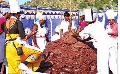 ಹೀಗಾಗಿ ರಾಯಸಮುದ್ರ ಗ್ರಾಮದ ಮನೆ ಮನೆಯಲ್ಲಿ ಉಚಿತವಾಗಿ 15 ಕ್ವಿಂಟಾಲ್ ರಾಗಿಯನ್ನು ಸಂಗ್ರಹಿಸಿ, 13 ಮುದ್ದೆ ತಯಾರಿಸುವ ನುರಿತ ಬಾಣಿಸಿಗರ ಸಹಾಯದಿಂದ ಮುದ್ದೆ ತಯಾರಿಸುವ ಕಾರ್ಯದಲ್ಲಿ ಮಗ್ನರಾದರು. ಈ ಮುದ್ದೆಯನ್ನು ಸುಮಾರು 6 ಅಡಿ ಅಗಲ, 8 ಅಡಿ ಎತ್ತರದಲ್ಲಿ ತಯಾರಿಸಲಾಯಿತು.