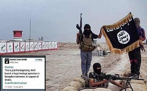 ಈ ಸಂಬಂಧ 'ಇಸ್ಲಾಮಿಕ್ ಸ್ಟೇಟ್ ಮೀಡಿಯಾ' ಎಂಬ ಖಾತೆಯಿಂದ ಸೋಮವಾರ ಬೆಳಗ್ಗೆ 11.20ರ ಸುಮಾರಿಗೆ ಟ್ವೀಟ್ ಮಾಡಲಾಗಿದ್ದು, 'ಸಿಡ್ನಿ ಘಟನೆ ಆರಂಭಿಕ ಹಂತ. ಬೆಂಗಳೂರಿನಲ್ಲೂ ಮಂಗಳವಾರ ಇದು ಮುಂದುವರೆಯಲಿದೆ. ದೊಡ್ಡ ಪ್ರಮಾಣದಲ್ಲಿ ಒತ್ತೆಯಾಳು ಕಾರ್ಯಾಚರಣೆ ನಡೆಸಲಾಗುವುದು. ಅದಕ್ಕಾಗಿ ಶಮಿ ಸಂಘಟನೆ ಸದಸ್ಯರ ನೆರವು ಪಡೆಯಲಾಗುವುದು' ಎಂದು ಟ್ವೀಟ್ನಲ್ಲಿ ಘೋಷಿಸಲಾಗಿದೆ.