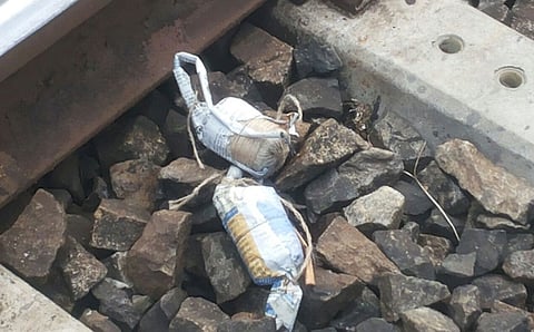 ಬೆಳಗಾವಿ: ಮಡಿಗುಂಜಿ ವ್ಯಾಪ್ತಿಯ ರೈಲ್ವೆ ಹಳಿಯಲ್ಲಿ ಇಂದು 2 ಕಚ್ಚಾ ಬಾಂಬ್ಗಳು ಪತ್ತೆಯಾಗಿವೆ. ಕಚ್ಚಾ ಬಾಂಬ್ ಪತ್ತೆಯಾದ ಸುದ್ದಿ ತಿಳಿದೊಡನೆ ಸ್ಥಳಕ್ಕೆ ಧಾವಿಸಿದ, ಬಾಂಬ್ ನಿಷ್ಕ್ರಿಯ ದಳ ಸಿಬ್ಬಂದಿ ಕಚ್ಚಾ ಬಾಂಬ್ಗಳನ್ನು ನಿಷ್ಕೃಯಗೊಳಿಸಿದರು. 2 ಕಚ್ಚಾ ಬಾಂಬ್ಗಳ ಪೈಕಿ ಒಂದು ಜೀವಂತಾ ಕಚ್ಚಾ ಬಾಂಬ್ಆಗಿದ್ದು, ಅದನ್ನು ನಿಷ್ಕ್ರಿಯಗೊಳಿಸುವಲ್ಲಿ ಯಶಸ್ವಿಯಾದರು.