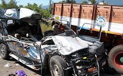 ತುಮಕೂರು ಜಿಲ್ಲೆ ಶಿರಾ ತಾಲೂಕಿನ ಕಳ್ಳಂಬೆಳ್ಳ ಪೊಲೀಸ್ ಠಾಣೆ ವ್ಯಾಪ್ತಿಯ ಚಿಕ್ಕನಹಳ್ಳಿಯಲ್ಲಿ ಈ ದುರ್ಘಟನೆ ನಡೆದಿದೆ. ಈ ಅಪಘಾತದಲ್ಲಿ ಐವರು ಮೃತಪಟ್ಟಿದ್ದು, ನಾಲ್ವರಿಗೆ ಗಂಭೀರ ಗಾಯಗಳಾಗಿದೆ. ಒಬ್ಬರ ಸ್ಥಿತಿ ಚಿಂತಾಜನಕವಾಗಿದೆ. ಗಾಯಗೊಂಡವರನ್ನು ತಾಲೂಕು ಆಸ್ಪತ್ರೆಗೆ ಸೇರಿಸಿ ಚಿಕಿತ್ಸೆ ನೀಡಲಾಗುತ್ತಿದೆ.