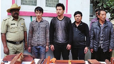 ಚೀನಾದ ತಾನ್ ಜಿ ಶೋಯ್(51), ಟೋಲ್ ಶೋಯ್ ಯುನ್(45), ಸರ್ ಯಿ ಶಯ್(25) ಹಾಗೂ ವಿಯ್ಲಿಅಂಗ್(27) ಬಂಧಿತರು. ಪ್ರಕರಣಕ್ಕೆ ಸಂಬಂದಿಸಿದಂತೆ ಕರ್ತವ್ಯ ನಿರ್ಲಕ್ಷ್ಯದ ಆರೋಪದ ಮೇಲೆ ಸೂಲಿಬೆಲೆ ಠಾಣೆ ಎಸ್ಪಿ ಪಿ.ಎನ್.ನವೀನ್ ಹಾಗೂ ಹೆಡ್ ಕಾನ್ಸ್ಟೇಬಲ್ ಕೃಷ್ಣಪ್ಪ ಎಂಬುವರನ್ನು ಅಮಾನತು ಮಾಡಲಾಗಿದೆ. ಆರೋಪಿಗಳು ಎರಡು ತಿಂಗಳ ಹಿಂದೆ ಉದ್ಯೋಗ ವೀಸಾ ಮೇಲೆ ಬೆಂಗಳೂರಿಗೆ ಬಂದಿದ್ದರು. ನಗರ ಹೊರವಲಯದ ಸೂಲಿಬೆಲೆ ಸಮೀಪದ ಪಿಳ್ಳಗುಂಪ ಕೈಗಾರಿಕಾ ಪ್ರದೇಶದಲ್ಲಿ ಒಂದು ಶೆಡ್ನಲ್ಲಿ ಅಕ್ರಮವಾಗಿ ರಕ್ತ ಚಂದನ ಸಂಗ್ರಹಿಸಿಟ್ಟುಕೊಂಡು ವಿವಿಧ ಪೀಠೋಪಕರಣ ತಯಾರಿಸುತ್ತಿದ್ದರು.