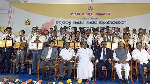 ಕಳೆದ ಐದು ವರ್ಷಗಳಿಂದ ಕನ್ನಡದಲ್ಲಿ ಆದೇಶ ಬರೆಯುತ್ತಿರುವ 285 ನ್ಯಾಯಾಧೀಶರನ್ನು ಕನ್ನಡ ಅಭಿವೃದ್ಧಿ ಪ್ರಾಧಿಕಾರದಿಂದ ಗೌರವಿಸಲಾಗಿದೆ. ಆದರೆ ಮುಂದಿನ ವರ್ಷದಿಂದ ನ್ಯಾಯಾಧೀಶರ ಜತೆಗೆ ಕನ್ನಡದಲ್ಲಿಯೇ ಕಲಾಪ ನಡೆಸುತ್ತಿರುವ ವಕೀಲರನ್ನೂ ಗುರುತಿಸಲಾಗುವುದು. ಈ ಬಗ್ಗೆ ನ್ಯಾಯಾಧೀಶರಿಂದಲೇ ಪಟ್ಟಿ ಪಡೆದು ಅಂತಹ ಕನ್ನಡ ಪ್ರೇಮಿಗಳಿಗೆ ಸರ್ಕಾರ ಗೌರವಿಸಲಿದೆ ಎಂದು ಅವರು ಅಧೀನ ನ್ಯಾಯಾಲಯಗಳಲ್ಲಿ ಕನ್ನಡದಲ್ಲಿಯೇ ತೀರ್ಪು ನೀಡಿದ 48 ನ್ಯಾಯಾಧೀಶರನ್ನು ಸನ್ಮಾನಿಸಿ ಮಾತನಾಡಿದರು.