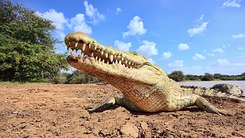 ಗೋಣಿಕೊಪ್ಪಲು: ತಿತಿಮತಿಯ ಹೊಲವೊಂದರ ಕೆರೆಯಲ್ಲಿ ಮೊಸಳೆ ತನಗಾಗಿ ಬೀಸಿದ ಬಲೆಯನ್ನೇ ತುಂಡರಿಸುತ್ತಿದೆ.