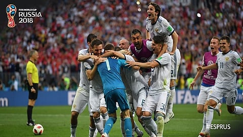 120 ನೇ ನಿಮಿಷದಲ್ಲಿ ರಷ್ಯಾ ನಾಯಕ ಹಾಗೂ ಗೋಲು ಕೀಪರ್ ಇಗೊರ್ ಅಕಿನ್ ಪಿವ್ ,ಇಯಾಗೊ ಅಸ್ಪಾಸ್ ಹಾಗೂ ನಾಲ್ವರು ಆಟಗಾರರು ಪೆನಾಲ್ಟಿ ಶೂಟ್ ನಲ್ಲಿ ಸಿಡಿಸಿದ ಸ್ಟಾಟ್ ಕಿಕ್ ಗಳು ಅತಿಥೇಯರನ್ನು 1-1ರ ಡ್ರಾನಲ್ಲಿ ತಂದು ನಿಲ್ಲಿಸಿತು.