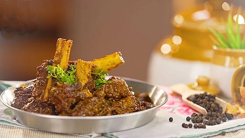 ಬಳಿಕ ಗರಂ ಮಸಾಲ ಪುಡಿ, ಕಾಳುಮೆಣಸಿನ ಪುಡಿ ಹಾಕಿ ಹುರಿಯಿರಿ. ನಂತರ ಪ್ರೆಶರ್ ಕುಕ್ಕರಿನಲ್ಲಿ ಬೇಯಿಸಿದ್ದ ಮಾಂಸದ ತುಂಡುಗಳನ್ನು ಇದಕ್ಕೆ ಹಾಕಿ ಚೆನ್ನಾಗಿ ಮಿಶ್ರಣ ಮಾಡಿ.