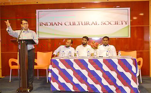 ಸಮಾರಂಭದ ಅದ್ಯಕ್ಷ ಸ್ಥಾನ ವಹಿಸಿದ ಇಂಡಿಯನ್ ಕಲ್ಚರಲ್ ಸೊಸೈಟಿಯ ಕರ್ನಾಟಕ ವಿಭಾಗದ ಅದ್ಯಕ್ಷರಾದ ನಾಸಿರ್ ಕಾರಜೆಯವರು ಯು ಎ ಇ ಯಲ್ಲಿ ಸಂಘಟನೆಯು ಮಾಡುತ್ತಿರುವ ಸಮಾಜ ಮುಖಿ ಕಾರ್ಯಕ್ರಮದ ಕಿರು ಪರಿಚಯವನ್ನು ನೀಡಿದರು.ಇಂಡಿಯನ್ ಕಲ್ಚರಲ್ ಸೊಸೈಟಿ ಅನಿವಾಸಿ ಭಾರತೀಯರ ಸೇವೆಗೆ ಸದಾ ಸಿದ್ದವಿದ್ದು ರಕ್ತದಾನ,ಉದ್ಯೋಗ ದೊರಕಿಸಿ ಕೊಡುವುದು,ಮೃತದೇಹಗಳನ್ನು ಭಾರತಕ್ಕೆ ರವಾನಿಸುವುದು,ಸಂಕಷ್ಟದಲ್ಲಿರುವವರಿಗೆ ನೆರವಿನ ಹಸ್ತ ಚಾಚುವಲ್ಲಿ ಮುಂಚೂಣಿಯಲ್ಲಿದೆ ಎಂದು ತಿಳಿಸಿದರು.