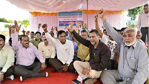 ಬೆಂಗಳೂರು: ವಿವಿಧ ಬೇಡಿಕೆ ಈಡೇರಿಸುವಂತೆ ಆಗ್ರಹಿಸಿ ನಗರದ ಫ್ರೀಡಂ ಪಾರ್ಕ್ನಲ್ಲಿ ಉಪನ್ಯಾಸಕರು ನಡೆಸುತ್ತಿರುವ ಪ್ರತಿಭಟನೆ ಮುಂದುವರೆದಿದ್ದು, ಪ್ರತಿಭಟನಾ ನಿರತ ಉಪನ್ಯಾಸಕರಿಗೆ ಷೋಕಾಸ್ ನೋಟಿಸ್ ಜಾರಿ ಮಾಡುವ ಮೂಲಕ ರಾಜ್ಯ ಸರ್ಕಾರ ವಿವಾದವನ್ನು ಮೈಮೇಲೆ ಎಳೆದುಕೊಂಡಿದೆ.