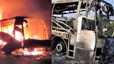 ಹುಬ್ಬಳ್ಳಿ: ಬೆಂಗಳೂರಿನಿಂದ ಹುಬ್ಬಳ್ಳಿಗೆ ತೆರಳುತ್ತಿದ್ದ ಖಾಸಗಿ ಬಸ್ ನಲ್ಲಿ ಬೆಂಕಿ ಕಾಣಿಸಿಕೊಂಡು ಮೂವರು ಪ್ರಯಾಣಿಕರು ಸಜೀವವಾಗಿ ದಹನವಾದ ಭೀಕರ ಘಟನೆ ಹುಬ್ಬಳ್ಳಿಯಲ್ಲಿ ನಡೆದಿದೆ.