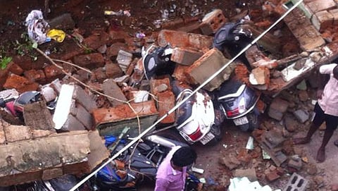 ಬೆಂಗಳೂರು: ಕಳೆದ ಮೂರು ದಿನಗಳಿಂದ ಸುರಿಯುತ್ತಿರುವ ಭಾರಿ ಮಳೆಯಿಂದಾಗಿ ಬೆಂಗಳೂರು ನಗರ ಅಕ್ಷರಃ ತತ್ತರಿಸಿ ಹೋಗಿದ್ದು, ಗುರುವಾರ ರಾತ್ರಿ ಮಾರತ್ ಹಳ್ಳಿ ಸಮೀಪ ಭಾರತೀಯ ವಾಯು ಸೇನೆಗೆ ಸೇರಿದೆ ಜಾಗದ ಕಾಪೌಂಡ್ ಕುಸಿದ ಪರಿಣಾಮ ಸುಮಾರು 7 ವಾಹನಗಳು ಜಖಂಗೊಂಡಿವೆ.