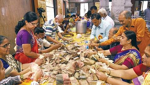 ಕಳೆದ 15 ದಿನಗಳಲ್ಲಿ ನಮ್ಮ ಇಲಾಖೆಗೆ ಸೇರಿದ ದೇವಾಲಯಗಳ ಆದಾಯ ಭಾರೀ ಹೆಚ್ಚಿದೆ. ನೋಟು ನಿಷೇದ ಮಾಡಿರುವ ಹಿನ್ನೆಲೆಯಲ್ಲಿ ದೇವಾಲಯದ ಹುಂಡಿಗಳಲ್ಲಿ ಗಣನೀಯ ಪ್ರಮಾಣದ ಹಣ ಸಂಗ್ರಹವಾಗಿದೆ ಎಂದು ಮುಜರಾಯಿ ಇಲಾಖೆ ಅಧಿಕಾರಿಯೊಬ್ಬರು ದಿ ನ್ಯೂ ಇಂಡಿಯನ್ ಎಕ್ಸ್ ಪ್ರೆಸ್ ಗೆ ತಿಳಿಸಿದ್ದಾರೆ.