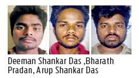 ದೀಮನ್ ಶಂಕರ್ ದಾಸ್ (26) ಆತನ ಸಹೋದರ ಅರುಪ್ ಶಂಕರ್ ದಾಸ್ (36) ಮತ್ತು ಅವರ ಗೆಳೆಯ ಭರತ್ ಪ್ರಧಾನ್ (22) ಬಂಧಿತ ಆರೋಪಿಗಳು. ಆಸ್ಸಾಂ, ಹಾಗೂ ಒಡಿಶಾ ಮೂಲದವರಾದ ಇವರು ಕಳೆದ 8 ತಿಂಗಳ ಹಿಂದೆ ಕೂಲಿ ಕೆಲಸಕ್ಕಾಗಿ ನಗರಕ್ಕೆ ಬಂದಿದ್ದರು. ನಂತರ ಅಪರಾಧ ಕೆಲಸಕ್ಕೆ ಇಳಿದಿದ್ದರು.